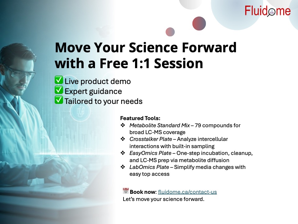 Working in metabolomics, microbial screening, or LC-MS assay development? Book a free personalized session with Fluidome to: